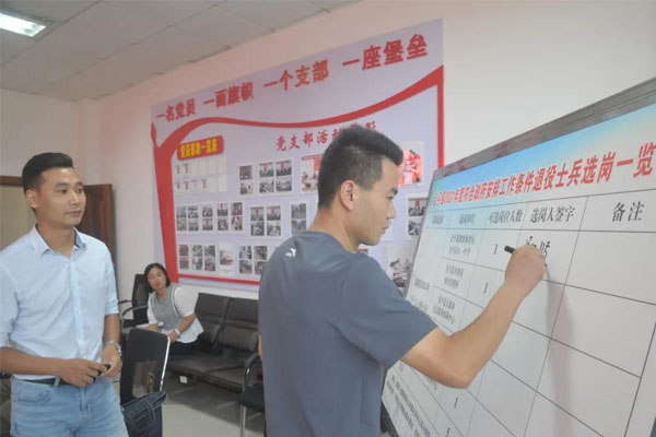 此次安置选岗严格做到“阳光安置”,确保公开、公正、公平。鼓励退役军人到民族地区、艰苦边远地区、边境乡镇工作,发扬退役军人“退伍不褪色”的优良作风,扎根边疆,干事创业。金平县退役军人事务局党组书记、局长张志红对退役士兵提出了三点希望:一是尽快转变角色,适应岗位要求;二是加强理论和业务学习,提升工作能力与业务水平;三是服从安置单位管理,严以律己,扎实工作,把部队的优良工作作风,务实求效为全面建设美丽家乡作出应有的担当。(金平县退役军人事务局)