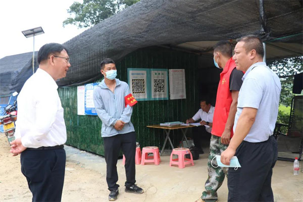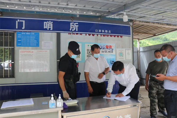 8月7日,红河州人大常委会副主任向从科到金水河镇调研边境疫情防控工作,金平县人大常委会主任曹福顺,县委常委、县纪委书记、县监委主任李剑及金水河镇主要领导陪同调研。