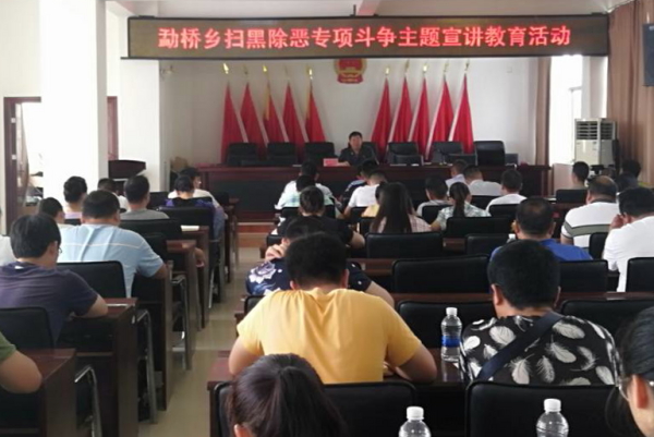 为进一步加大扫黑除恶社会宣传力度,营造良好的社会氛围和强大的舆论引导,不断把扫黑除恶专项斗争引向深入,2019年4月23日,以县法院副院长谢宗志为组长的县委宣讲团走进勐桥乡,开展了以“开展扫黑除恶,建设善美云南”为主题的宣讲教育活动。
