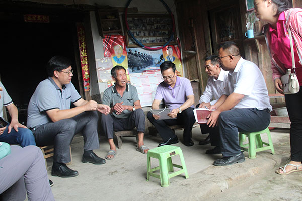 调研组一行首先深入到土马村委会晒场坡,对易地扶贫搬迁、 农危改、义务教育、基本医疗、住房安全和饮水安全等工作开展情况进行实地调研,并走访贫困户,看望困难群众。冒着细雨,调研组来到建档立卡贫困户黄文祥老人家中,认真查看明白卡,了解家庭收入来源、就业务工情况,关切询问老人的身体健康情况、小孩上学、生病就医等情况。鼓励他们坚定信心,在党和政府的帮助下,靠自己的勤奋努力实现更高质量的小康。
