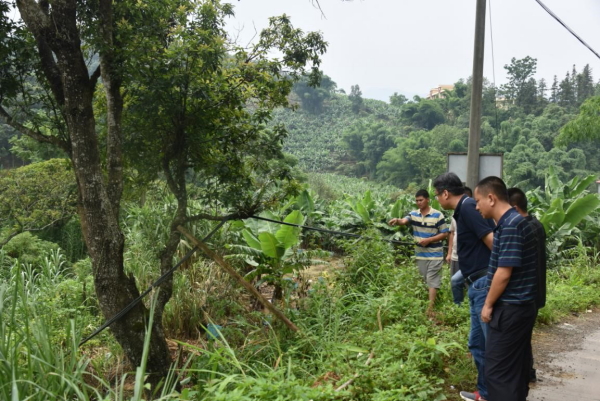 随后杨磊和毛雪峰一行又先后来到分别位于勐拉村委会的马蝗塘村小组、麻窝村小组、纳黄寨村小组的地质灾害监测点进行察看并通过和各监测点监测员进行交流,对每一个监测点进行详细的情况了解。