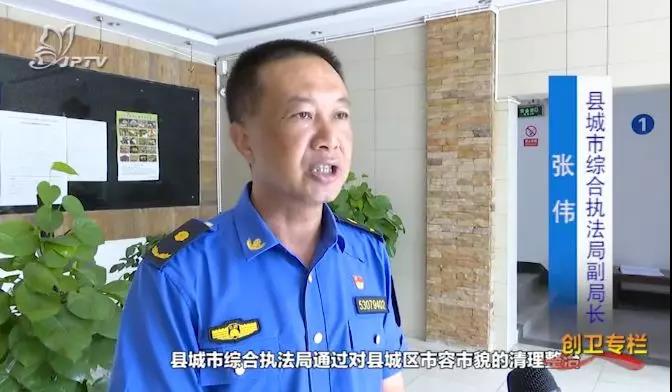 县城市综合执法局副局长 张伟:在县委、县政府的坚强领导下,县城市综合执法局通过对县城区市容市貌的清理整治,确保城市管理精细维护常态化,向广大市民展示一个干净、优美、整洁、文明的市容市貌。