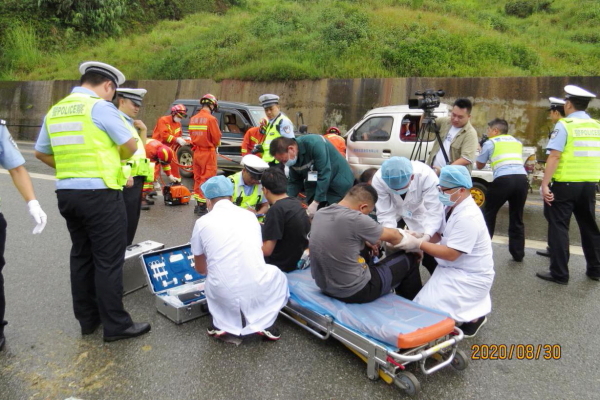 为进一步增强道路交通事故快速发现、及时救援、有效救治、妥善救助“四位一体”联动应急救援能力和水平,提高道路交通事故伤员救援救治效率,降低交通事故死亡率和死伤比,保护人民群众的生命财产安全。8月30日上午,金平县道路交通安全委员会组织公安交警、应急管理、交通运输、消防救援、医疗救护、公路管理等职能部门开展交通事故“四位一体”联动应急救援演练活动。
