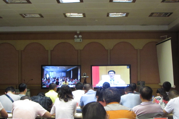 7月19日下午,金平县人民政府办公室组织参加在县电信局分会场收听收看国务院和云南省组织召开第四次全国经济普查电视电话会议,全县成员单位共40余人参加会议。
