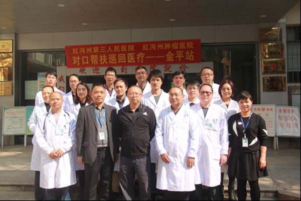 近日,为深入推进健康扶贫和对口帮扶工作,红河州第三人民医院专家团队一行9人到金平县开展对口帮扶巡回医疗义诊活动。专家组分别到县人民医院相关科室坐诊,为患者提供疾病诊治和胃肠镜、中医针灸等检查服务,并与县医院医师讨论病例,针对疑难手术,一起进行现场手术示教。活动得到了群众的广泛好评。
