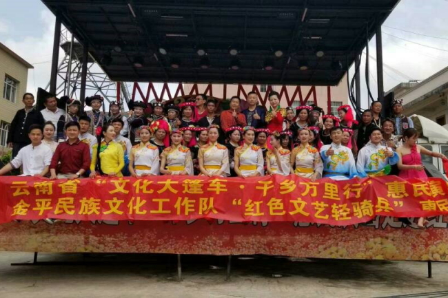 4月25日,省文化厅“2018红色文艺轻骑兵、百团千队下基层”暨2018年“文化大篷车、千乡万里行”文化惠民演出六分队惠临金平县“蝴蝶故乡”马鞍底乡,共进行了两场惠民演出,金平县民族文化工作队“红色文艺轻骑兵”常江、罗莎莎一行助阵演出,金平县马鞍底乡人民政府乡长杨峰代表全乡广大人民群众致辞欢迎,演出取得圆满成功。