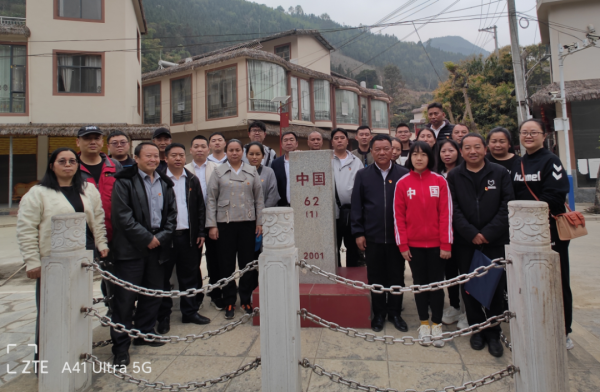 党课结束后,全体妇女同志围坐在普玉忠同志身边,继续聆听他讲述抗击疫情期间妇女同志能顶半边天的故事,普玉忠同志鼓励妇女干部要积极投身到各自的岗位上,为奋进新征程贡献巾帼力量。学习结束后,普玉忠同志带领大家一同前往62号界碑,为界碑描红并合影。