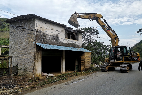 2019年12月29日,金平县勐桥乡人民政府和县自然资源局组成执法队伍,组织精干力量30余人对金平县龙脖河矿区公路沿线两违建筑进行拆除。