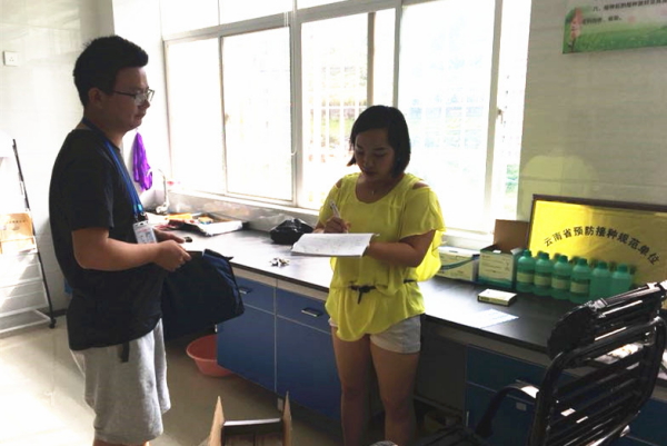 7月22日,国家药监局负责人通报了长春长生生物科技有限责任公司违法违规生产冻干人用狂犬病疫苗案件,为确保金平县疫苗质量安全可控,7月23日,金平县市场监督管理局迅速组织执法人员对金平县疾控中心及卫生院开展疫苗专项检查。