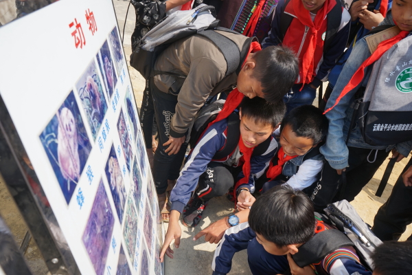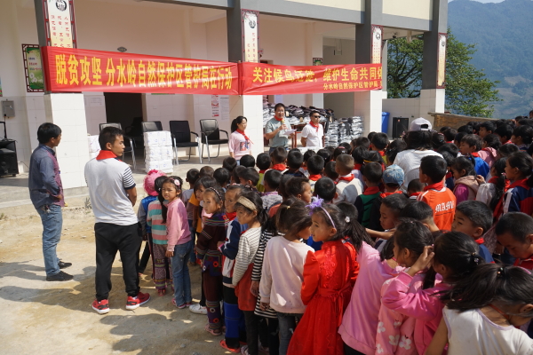 在赠送仪式上,云南金平分水岭国家级自然保护区管护局局长作了热情洋溢的讲话,强调全体师生要自觉树立和践行“绿水青山就是金山银山”理念,灌输“保护生态环境、保护森林资源、保护野生动植物,就是保护我们美丽的家园”思想。并对一直扎根基层,辛勤耕耘,默默奉献的全体教师表示良好的祝愿,勉励全体教师在工作中继续发挥爱生如子的优良传统,以更加务实的作风为贫困山区的教育事业作出更大的贡献。鼓励学生要好好学习,开心快乐学习,健康成长,长大后做对社会、对国家有用的人才。学生代表作了发言。赠送仪式结束后,组织全体师生参观了野生濒危动植物等图片展,工作人员向师生发放野生动植物保护宣传图册200余份,全体师生在“森林是地球之肺鸟儿为树木之医”等宣传标语上签上自己的名字。