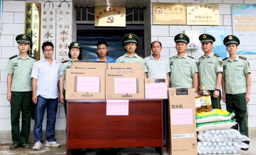 为积极响应国家精准扶贫战略,进一步深化推进爱民固边工作, 7月 6日,金水河边防检查站党委书记、政委杨春林带领党员官兵,带着站全体官兵对边疆人民的深情厚爱、真情和爱心,深入驻地金平县金河镇永平村委会进行走访慰问。