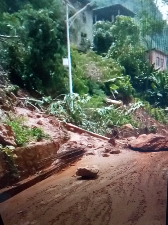 (2017年7月8日拍摄的山体滑坡图片,与现建挡土墙处为同一地点)