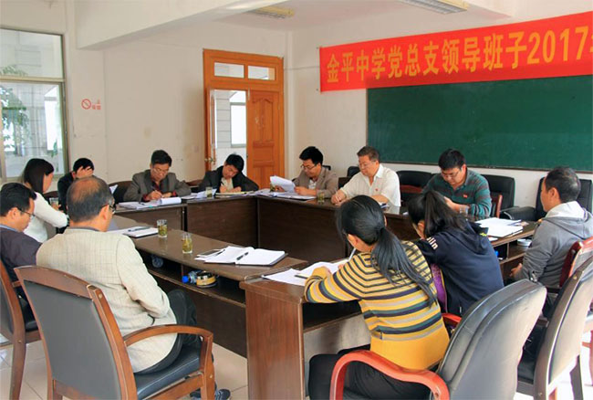 会议在通报2017年度金平中学党总支专题生活会征求意见、建议情况后,金平中学总支书记赵永华同志作动员讲话,并代表领导班子作班子对照检查,他从聚焦学习贯彻习近平新时代中国特色社会主义思想、认真执行党中央决策部署和上级党委决议决定、对党忠诚老实和担当责任、教书育人等七大方面的问题,深刻剖析存在问题的原因,提出明确具体的整改措施,强调要严格按照中央和省州县委以及教育工委部署要求,坚持问题导向,明确整改方向,细化整改措施,切实做到立行立改、真抓真改,确保党风党纪、校风校纪得到新的加强,学校领导班子凝聚力、向心力、战斗力得到新的更大提升。接着,赵永华同志带头作个人对照检查发言,并主动接受各位班子成员批评;其他委员逐一进行个人对照检查发言,随后认真开展批评与自我批评。大家紧扣主题,坦诚相见,相互批评开诚布公、态度诚恳、交流充分,达到了统一思想、明确方向、加油鼓劲的效果,开出了高质量、开出了新气象。
