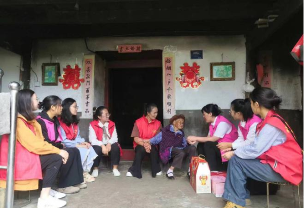 上门走访交谈,贴心发放爱心。
