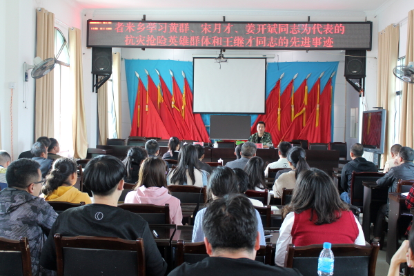 11月25日上午,者米乡组织全体干部职工学习黄群、宋月才、姜开斌、王继才同志的先进事迹。