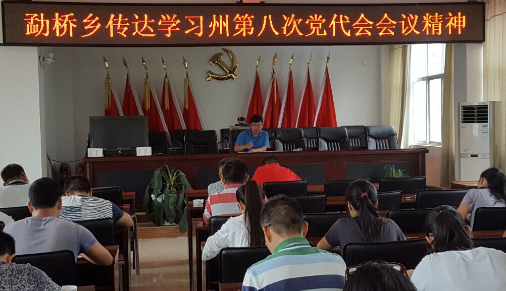 9 月 18日 上午,勐桥乡在乡政府六楼大会议室召开会议,会议由乡党委书记李进华主持,干部职工 40余人参加,传达学习了州第八次党代会精神。