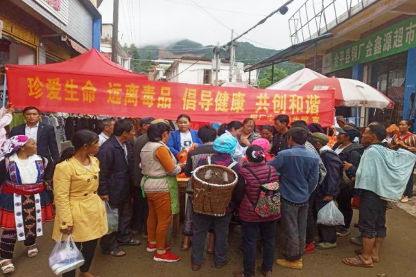 6月22日,金平县铜厂中心卫生院利用赶集天人群集中优势,开展了禁毒、防艾、食品药品安全宣传活动,乡卫生院、派出所、司法、安监等部门共同参与。
