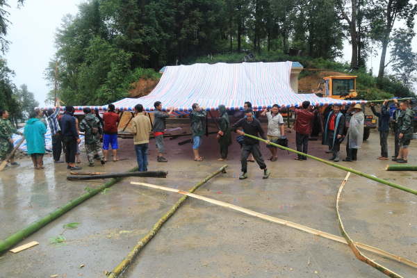 灾情发生后,老勐镇党委、政府高度重视,快速成立抢险救灾工作组、迅速组织民政、国土等相关站所人员赶赴受灾现场视察指导救援、统计受灾情况、安抚受灾群众。但因进村道路多处出现塌方交通中断,救援物资无法及时运往受灾点,救援工作人员只能就地取材组织群众搭建简易临时居住帐篷、帮助房屋受损群众协调临时居住点。因近期还将持续降雨,还存在发生二次滑坡的险情,为防止群众擅自返回存在安全隐患的房屋中居住、进屋搬离物品等情况,工作组安排了3名工作人员进行蹲点督促、随时监控灾情。