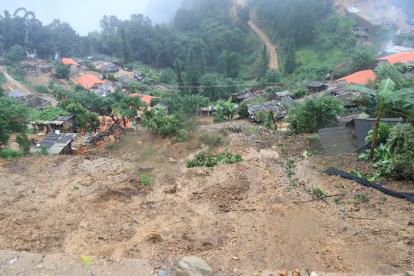 6月25日6时30分左右,因强降雨引发老勐镇新安里村委会小科村小组发生山体滑坡,导致两家群众房屋全部被冲毁,多家房屋不同程度受损,严重危及群众生命财产安全。