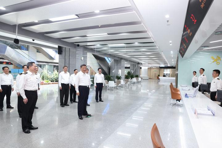 10月15日至16日,中共中央总书记、国家主席、中央军委主席习近平在福建考察。这是16日上午,习近平在中国(福建)自由贸易试验区厦门片区考察时,同综合服务大厅窗口工作人员亲切交流。新华社记者 燕雁 摄