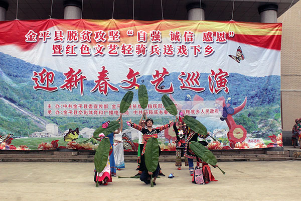 春节来临之际,为深入贯彻落实党的十九大精神,满足人民群众对美好精神文化生活的需要,助力全县打赢脱贫攻坚战暨庆祝改革开放40周年,金平县以脱贫攻坚“自强 诚信 感恩”为主题的“红色文艺轻骑兵”迎新春文艺汇演走进马鞍底乡,为全乡群众送去了欢乐,传递党的声音和关怀。