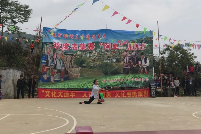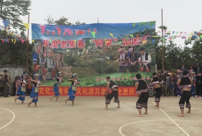 3月31日,在老集寨彝族支系啊噜“姑娘节”之际,金平县民族文化工作队深入老集寨丫口遮村委会中寨村开展“送戏”进啊噜山寨活动。