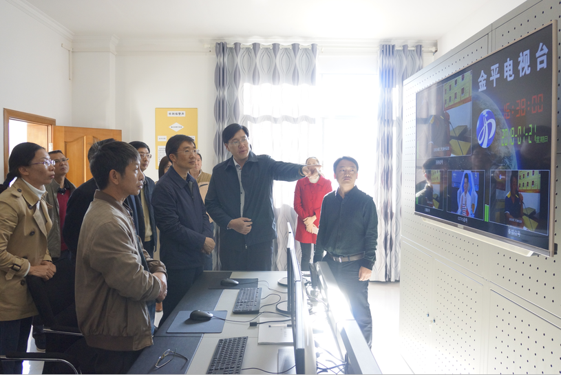 在金平县电视台,盛高举走进节目采编中心、演播室、播出机房详细了解了工作机制、人员配备、节目制作、经费保障、设施设备、安全播出等情况。