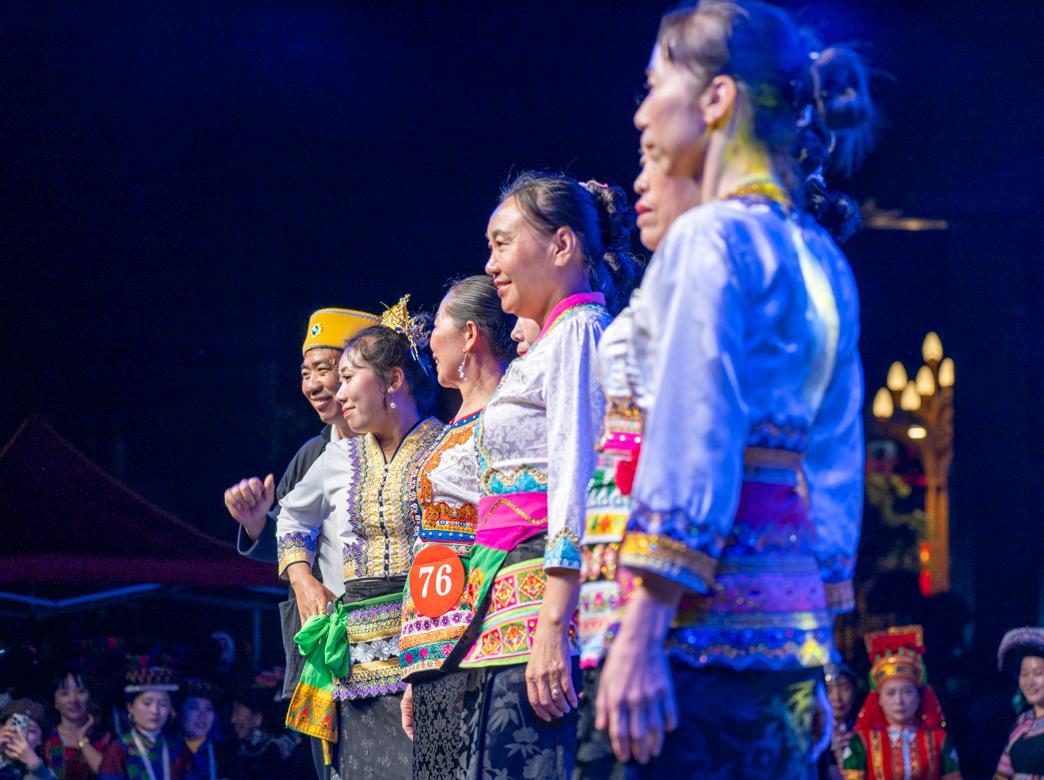 参演群众热情洋溢:“我穿的是苗族服饰。”“我的是哈尼族。明天就是我56岁的生日!”“我们是金平马鹿塘的,身上穿的是当地传统哈尼族服饰,我们五个姐妹一起来的。”