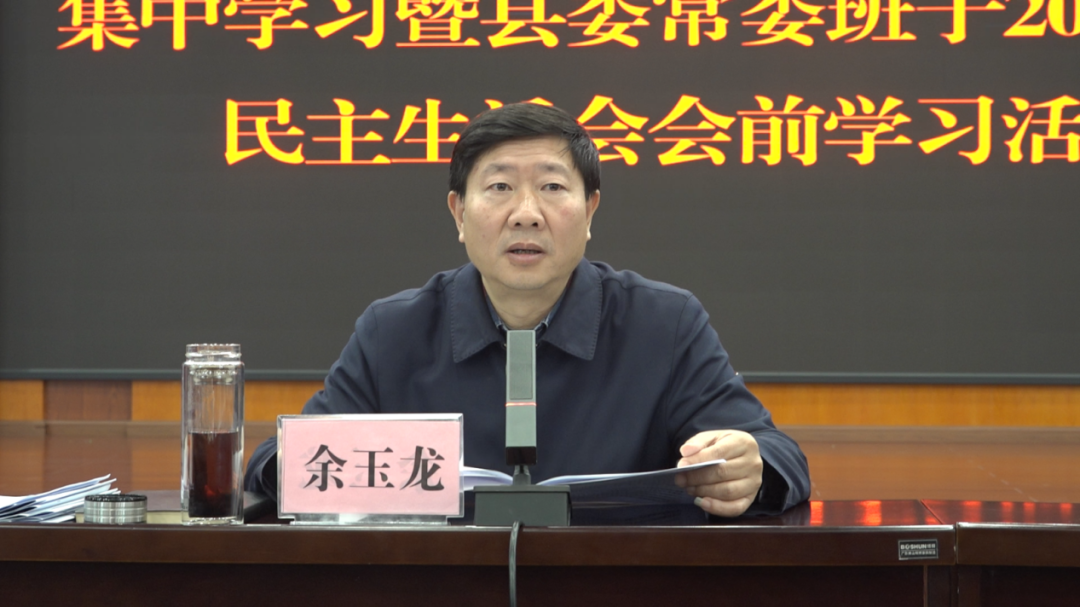 1月27日,县委理论学习中心组举行2026年第一次集中学习暨县委常委班子2025年度民主生活会会前学习。县委书记余玉龙主持会议并作讲话。