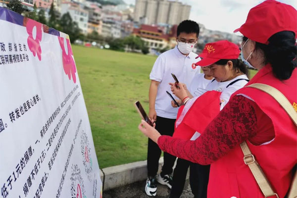 为落实中央财经委员会第十次会议关于建立健全三次收入分配制度和贯彻习近平总书记关于促进共同富裕的重要讲话精神,9月7日,金平县民政局、县政法委、县红十字会、县教育体育局、县残联,团县委,县老干部局、县老体协、县慈善会,县长寿产业发展协会、县阳光公益服务中心联合开展了以“做慈善事业的行动者,当共同富裕的同行人”为主题的慈善宣传活动,庆祝第六个“中华慈善日”,宣传《中华人民共和国慈善法》,深入普及慈善知识、持续传播慈善文化。