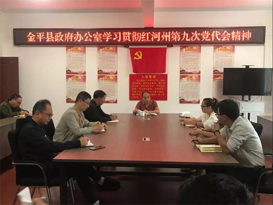 10月11日,金平县人民政府办公室召开会议,传达学习红河州第九次党代会精神。会议指出,州委书记赵瑞君同志在州第九次党代会上所作的工作报告,从十个方面总结回顾了全州在发展进程中不平凡的五年,描绘了未来五年的发展蓝图,思路新、目标实、措施具体,鼓舞人心,催人奋进。明确提出了今后五年“13568”的工作思路。聚焦“一个目标”:经济社会实现高质量跨越发展,经济总量达到4200亿元以上,力争比2020年翻一番。建成“三个示范区”:建成世界一流“三张牌”示范区、沿边开放示范区、民族团结进步示范区。形成“五大布局”:中心引领、两翼齐飞、南部振兴、沿边开放、廊带联动。实现“六个新突破”:奋进五年,经济发展实现新突破、城乡区域融合实现新突破、沿边开放发展实现新突破、生态文明建设实现新突破、民生福祉改善实现新突破、边疆治理效能实现新突破。抓好“八项重点工作”:高质量建成世界一流“三张牌”示范区、高质量建成沿边开放示范区、高质量建成民族团结进步示范区、高水平推动新型城镇化提速提质、深入实施乡村振兴战略、全面建设美丽红河秀美山川、不断满足人民日益增长的美好生活需要、推进边疆民族地区治理体系和治理能力现代化。