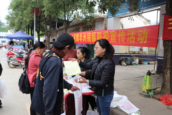 11月29日,金水河镇人民政府利用赶集日联合金水河海关开展防控“非洲猪瘟”宣传活动。这是金水河镇开展的第4次大型防控“非洲猪瘟”宣传活动。