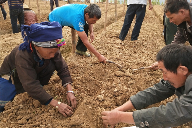 为引导更多的农户种植白芨,马撒斯村干部实地指导选择田块、松土整畦、示范播种、培土覆盖,帮助做好种植白芨工作。现场,村干部不停地指点着,不时做着示范,“掰开时注意不要伤到芽,白芨种密了不好……覆土不要过厚……”