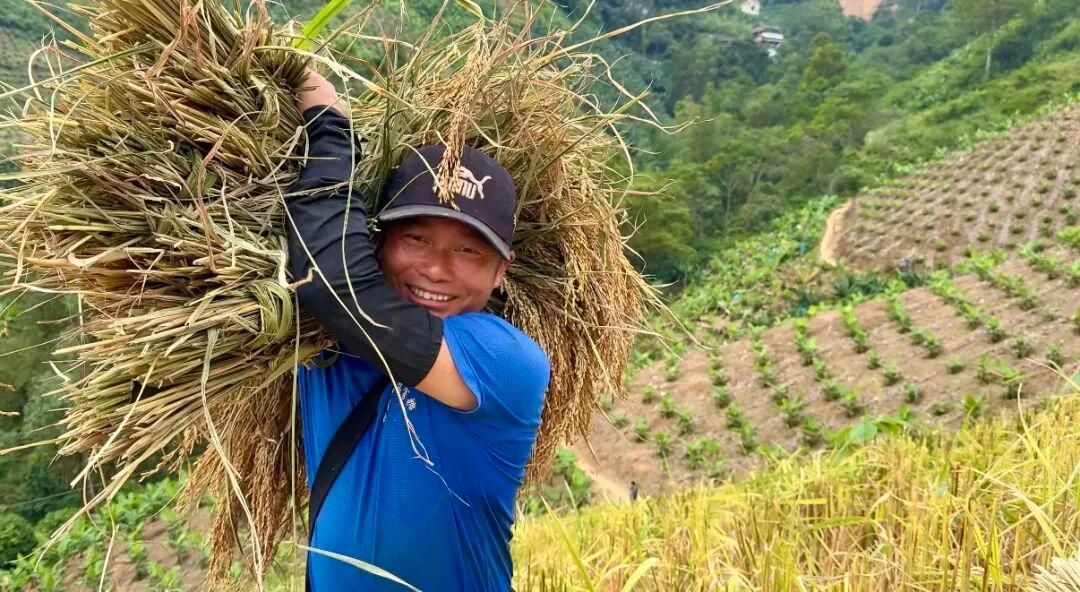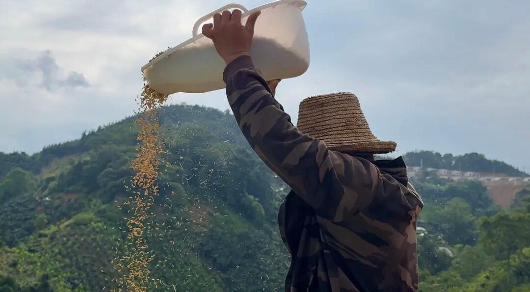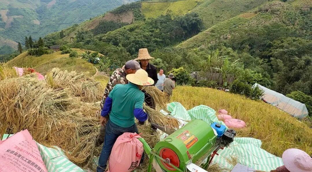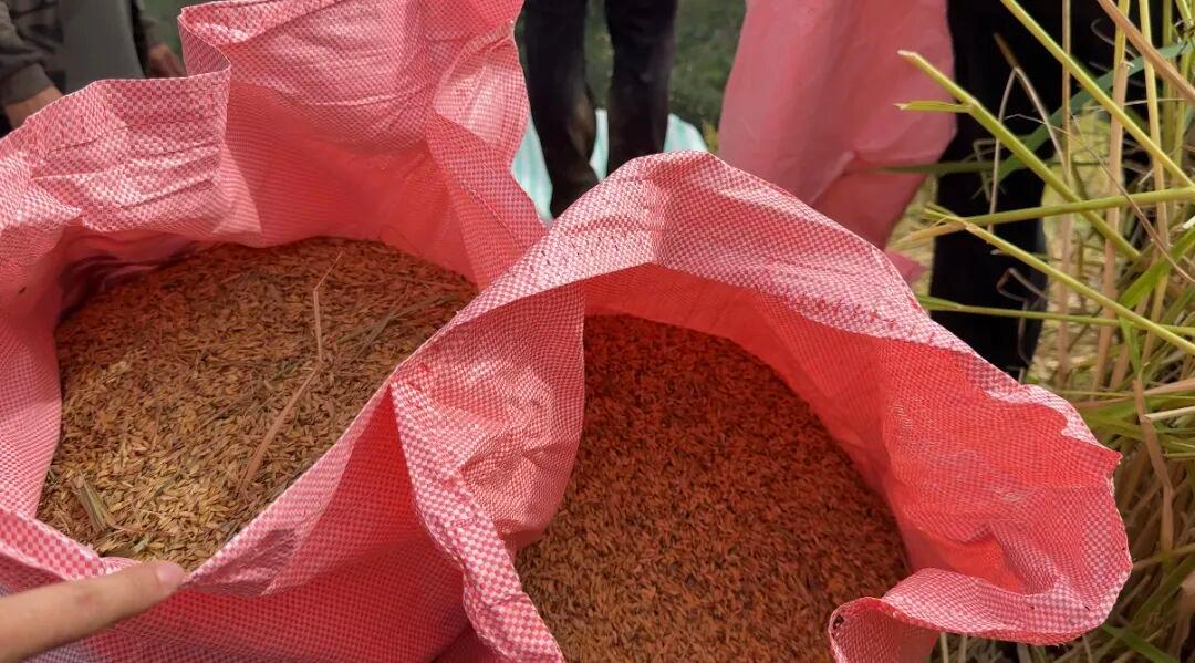 这份馈赠源于勐桥乡得天独厚的种植条件,作为哀牢山脉东南端的热带湿热河谷地区,这里的亚热带垂直立体气候为旱稻生长提供了天然温床,常年平均气温 25℃,日照充足、霜期短,更关键的是,当地降水集中在4-9 月,与旱稻播种、孕穗、灌浆等关键需水期精准匹配,加之西高东低的缓坡地形,既利于排水防涝,又能借助山地环境保持土壤干湿度,完美适配旱稻“耐旱不耐涝”的生长特性。据悉,大坡头村的旱稻每亩产量稳定在450公斤以上。农户盘进安开心地介绍道:“每年的收成完全可以满足一家人一年的口粮,甚至还能剩一些。”这方旱地的丰收,是作物的更替,是技术的进步,更是对粮食安全最生动的诠释。