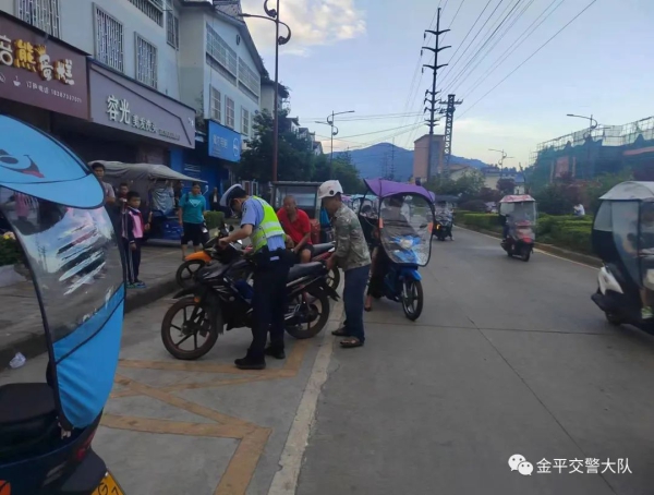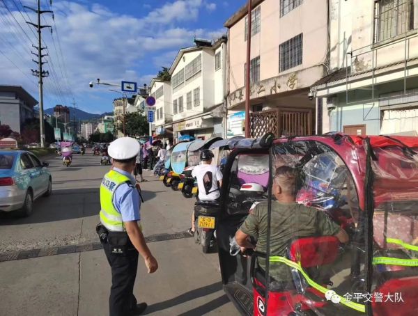 为进一步打造平安、畅通、有序的道路交通环境,保证广大师生的出行安全。自秋季开学以来,金平县公安局交警大队以学生上、下学时段为基础,积极调整勤务模式,延长执勤时间,坚持在校园门口及周边主要路口开展“护学”执勤工作,全力保障校园交通安全,构筑牢固交通安全防线。