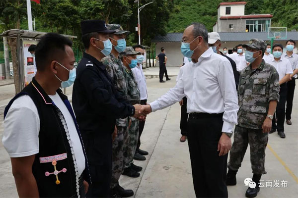 8月6日至8日,省委书记阮成发率队到红河哈尼族彝族自治州河口瑶族自治县、金平苗族瑶族傣族自治县督促检查疫情防控工作。他强调,要扎扎实实把习近平总书记重要指示精神在云南落实到位,把疫情防控和强边固防作为当前压倒一切的工作,融为一体、统筹推进,坚决打赢疫情防控阻击战。