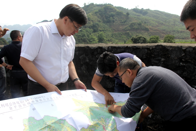 吴华昊一行于上午进入勐桥境后,首先登上石洞村小组后山,详细查看了新入驻的一家新型企业的厂房选址实地,现场听取了企业方工作人员和我县相关部门负责人的工作汇报,对工作进展表示满意。