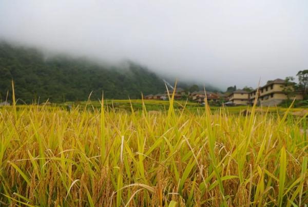 在秋风送爽的日子里,马鞍底乡的梯田被大自然的画笔染上了绚烂的色彩,绵延的山川、金灿灿的稻谷、洋溢着笑容的农人共同勾勒出“喜看稻菽千重浪”的丰收图景。