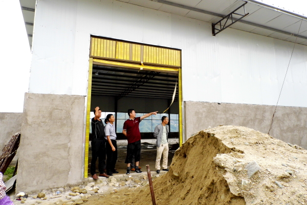 李代伟(右二)在扩建中的阿得博酸辣子厂调研指导工作